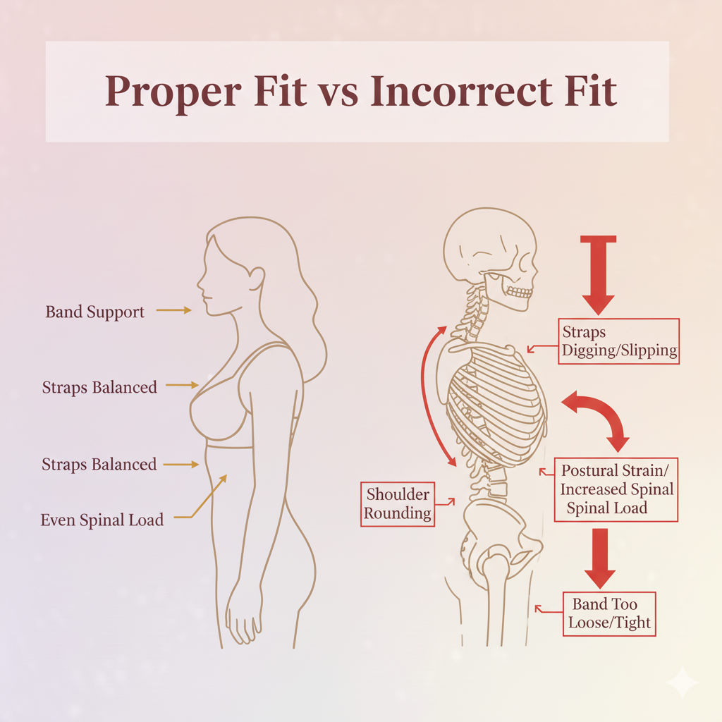 Can bras cause upper back pain? Yes—can bras cause upper back pain when poorly fitted. Bands that are too loose force straps to bear weight, creating upper back and shoulder strain. Too-tight bands restrict breathing and create their own discomfort.