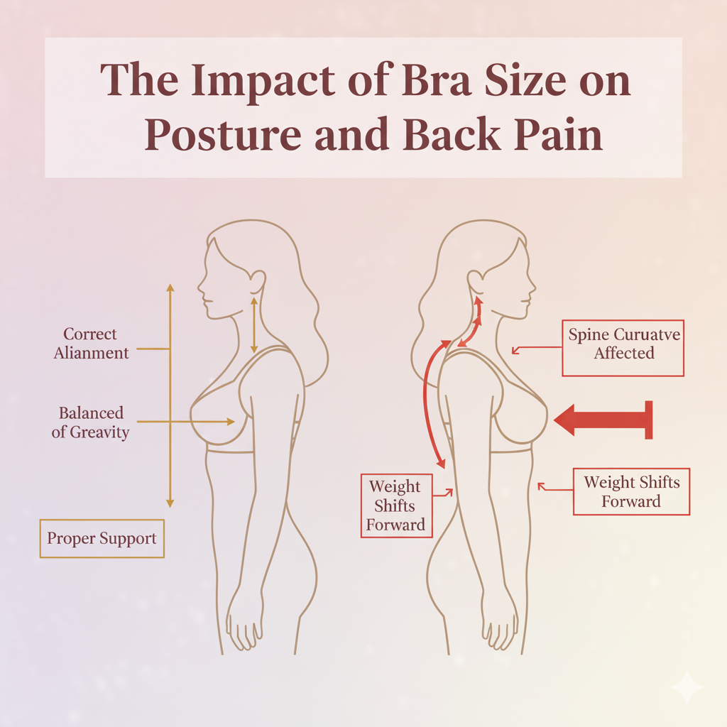 Breast volume (your actual cup size) creates the physical load your body must support. Bra fit, however, determines how effectively that load is distributed. Many women asking does cup size affect my posture discover their symptoms stem not from size alone but from years of wearing incorrectly fitted breast support garments.